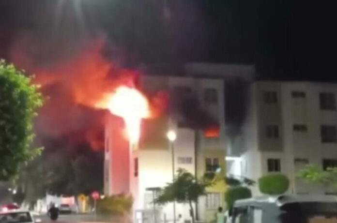 Aparentemente por un cortocircuito, dos departamentos de un condominio ardieron en llamas la noche del jueves, en el fraccionamiento Residencial Turquesa, perteneciente a la Región 249 de Cancún.