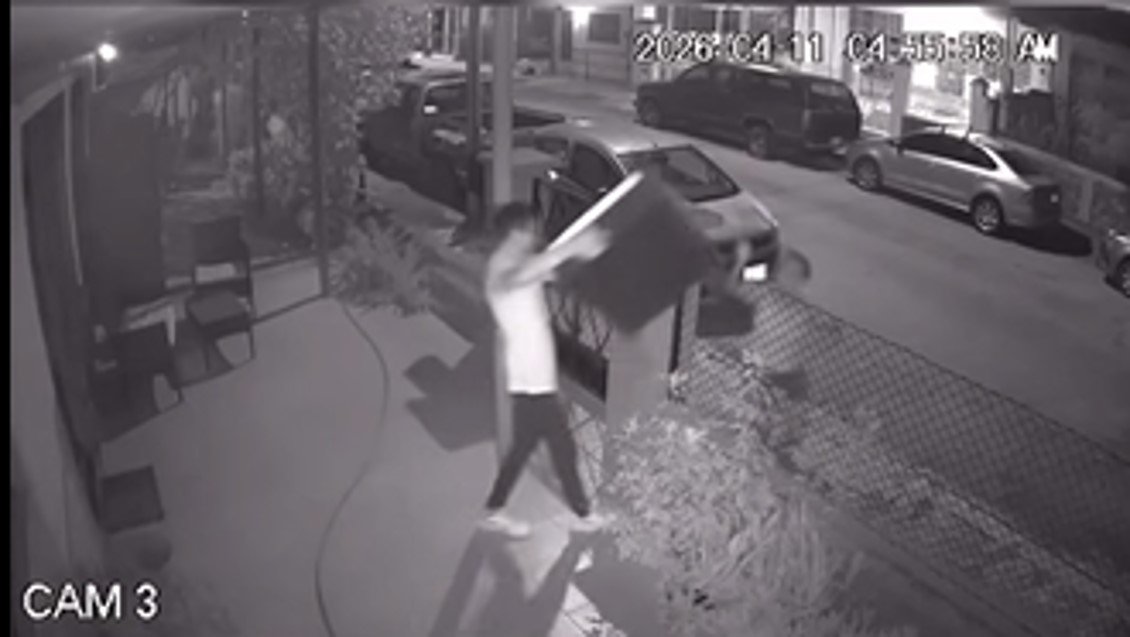 En las imágenes se observa a un sujeto que ingresa a un predio tras brincar una reja, actuando con rapidez para sustraer diversos objetos del interior. Mientras tanto, en el exterior lo esperaba una mujer, presuntamente su cómplice, quien recibía los artículos para agilizar la huida.