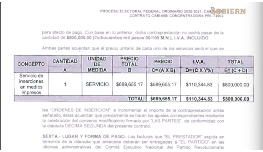 Por otra parte, sobre el audio que se difundió la semana pasada sobre el presunto contrato entre Televisa y Alito Moreno, el gobierno campechano presentó algunas capturas de pantalla sobre el documento que unió a ambos.
