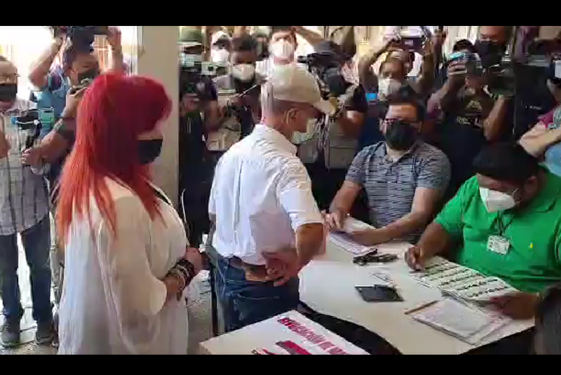 La gobernadora de Campeche, Layda Sansores San Román, emitió su voto a las 11 de la mañana en la casilla ubicada en la escuela primaria Héctor Pérez Martínez.