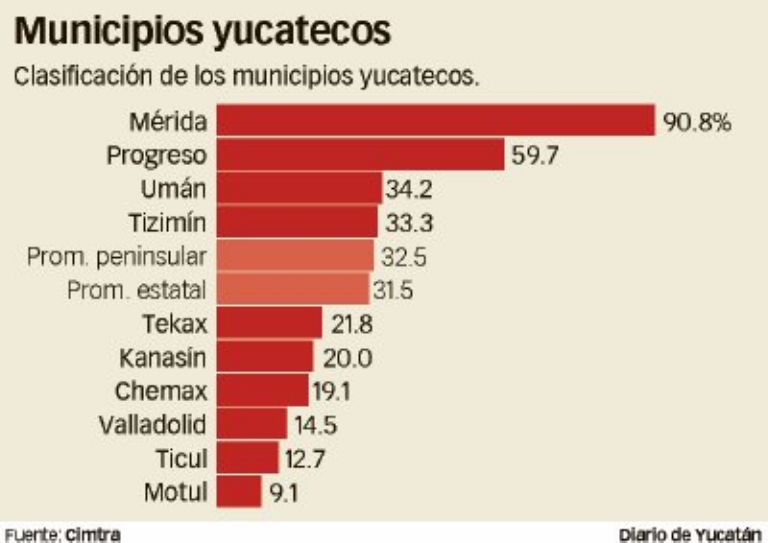 —En ese grupo hay tres de diez municipios del Estado de Yucatán: Mérida, Progreso y Umán, que ocupan la primera, cuarta y décima posiciones.