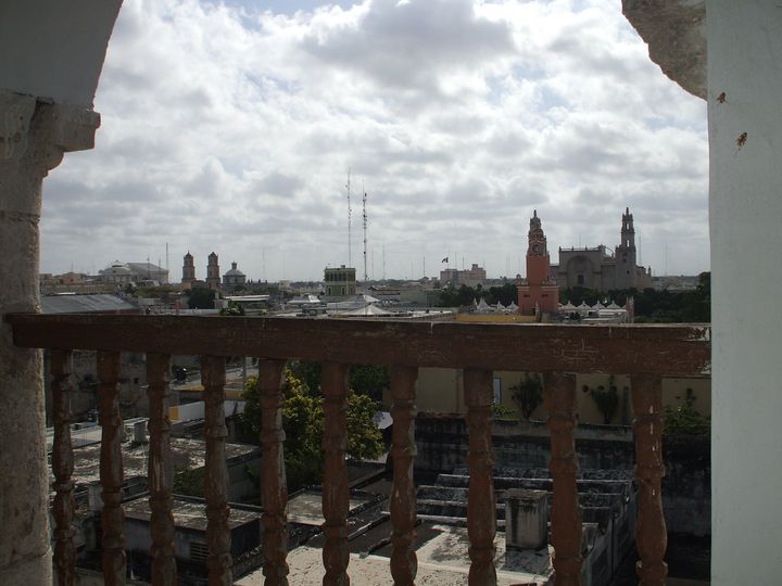 Finalmente, esta es una bella vista desde el mirador del templo ubicado en el angulo de las calles 63 y 64 -único por cierto en su tipo-, el cual hasta ahora no me explico porqué no lo abren al público ya que se podría pagar una cuota de recuperación para darle mantenimiento a esta icónica edificación. Al fondo se observa la torre del ayuntamiento y más atrás las de la catedral. Feliz domingo